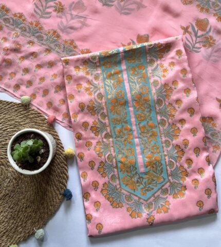 Light Pink Hand Block Printed Unstitched Suit