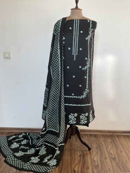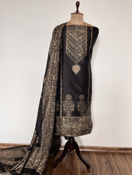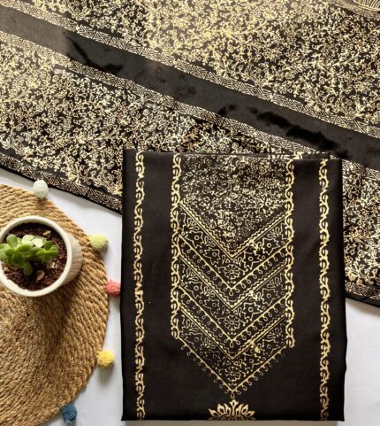 Black Hand Block Printed Unstitched Suit