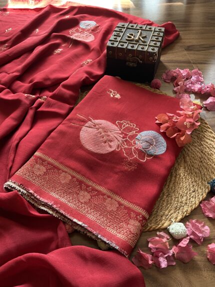 Cherry Red Banarasi Unstitched Suit