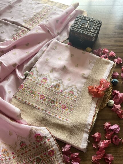 Light Pink Banarasi Unstitched Suit
