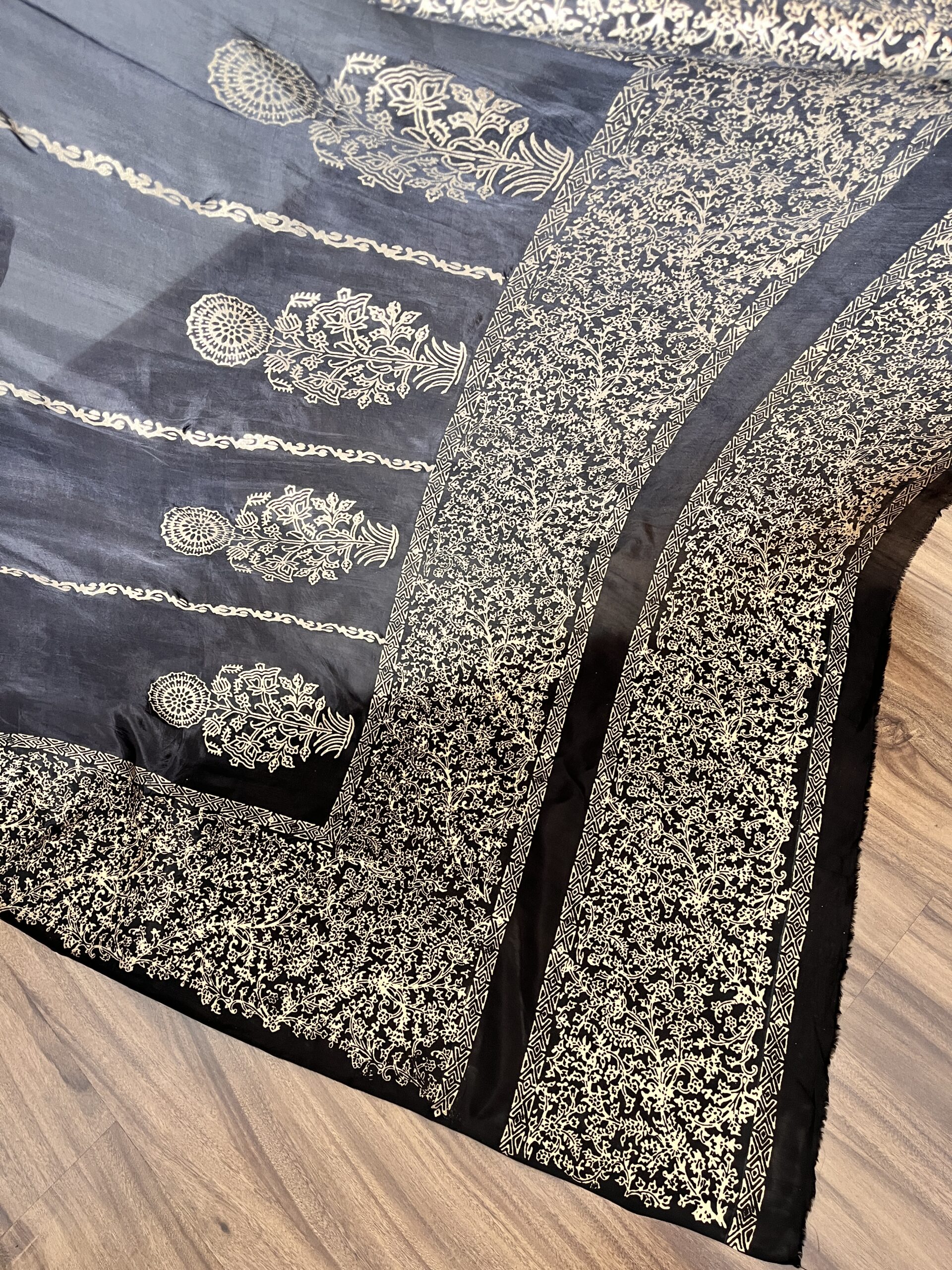 Black Hand Block Printed Unstitched Suit