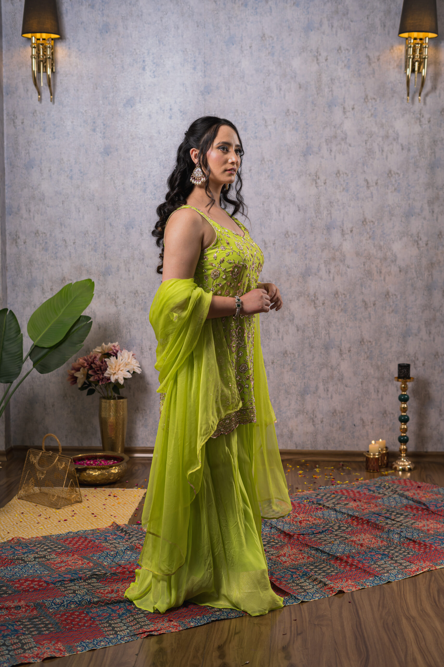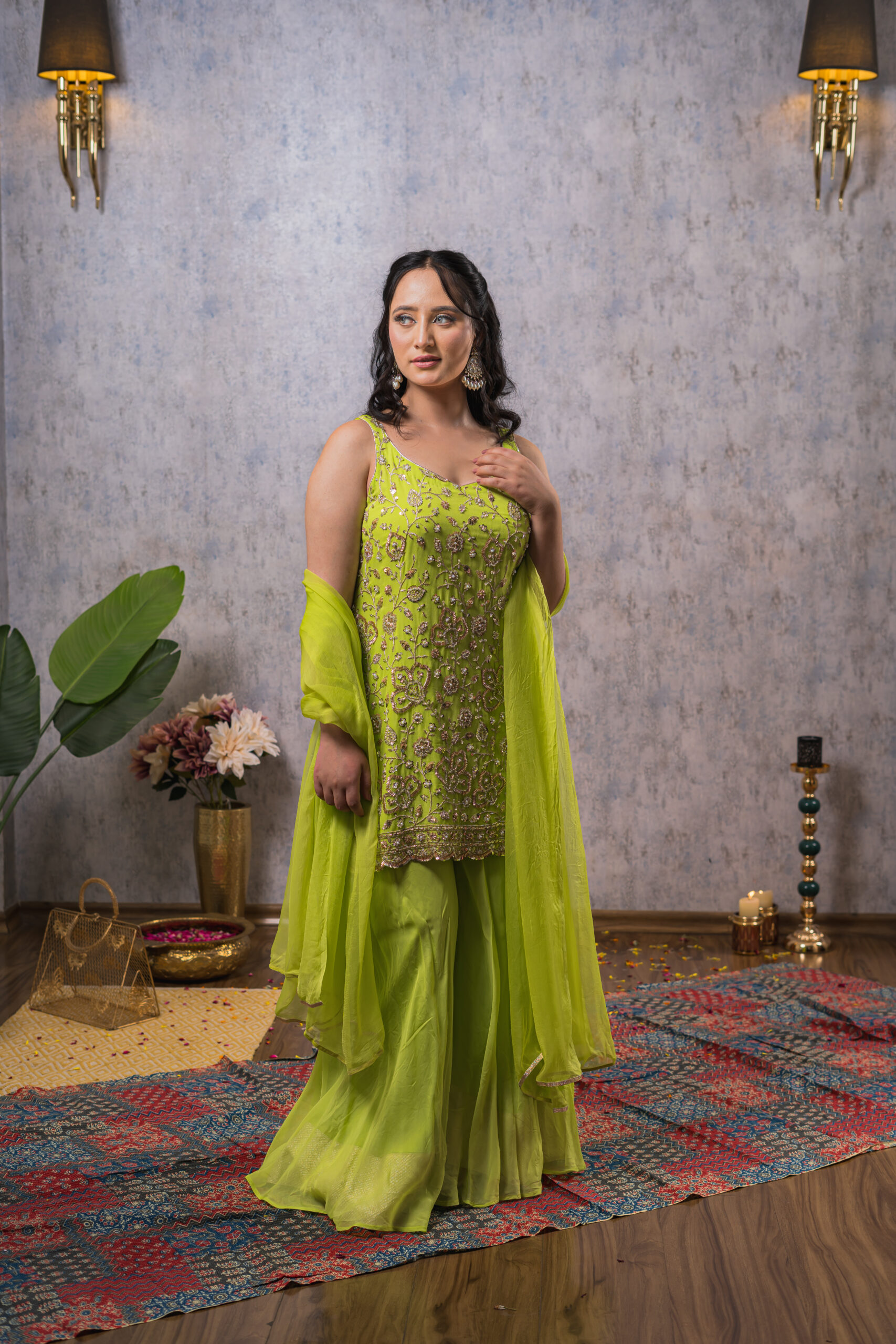 Georgette Kurta and Viscose Organza Sharara and Chiffon Dupatta |