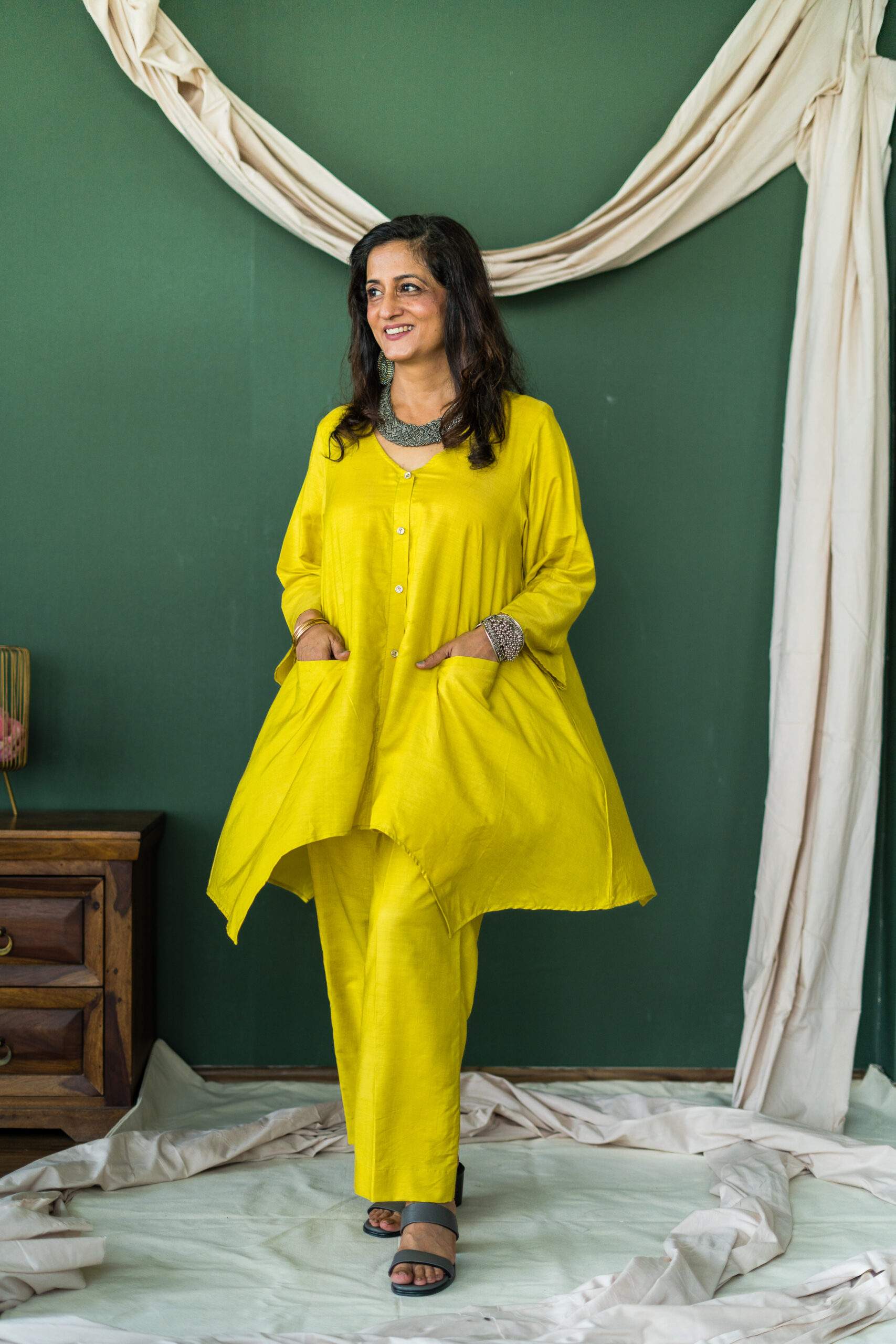 Elevate your everyday style with this captivating co-ord set, featuring an asymmetric top designed to add effortless charm to your life. Perfect wear for everyday.